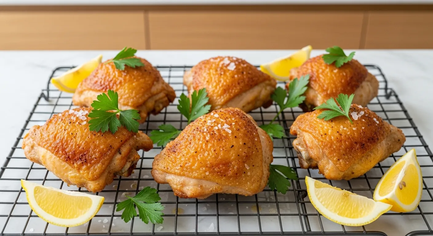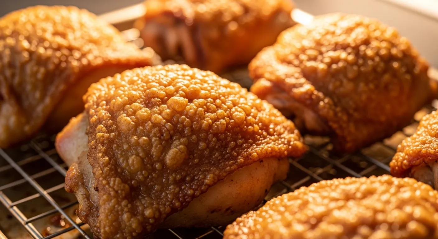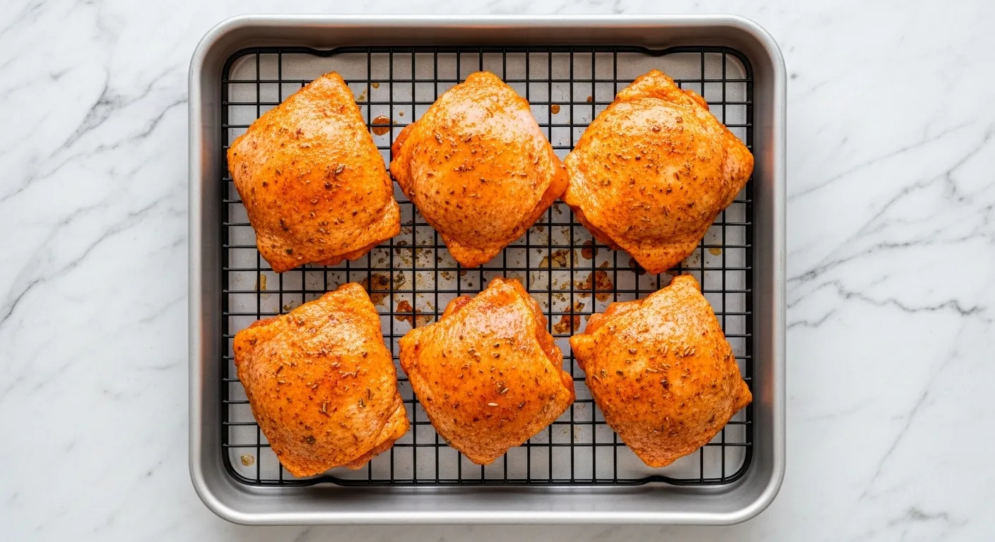 The secret is not complicated at all. It is two simple things: completely dry skin before seasoning, and a wire rack that allows hot air to circulate underneath the chicken as it roasts. These two steps transform a standard oven bake into something that rivals anything you would order at a restaurant — without the mess, without the oil, and in about 40 minutes total.