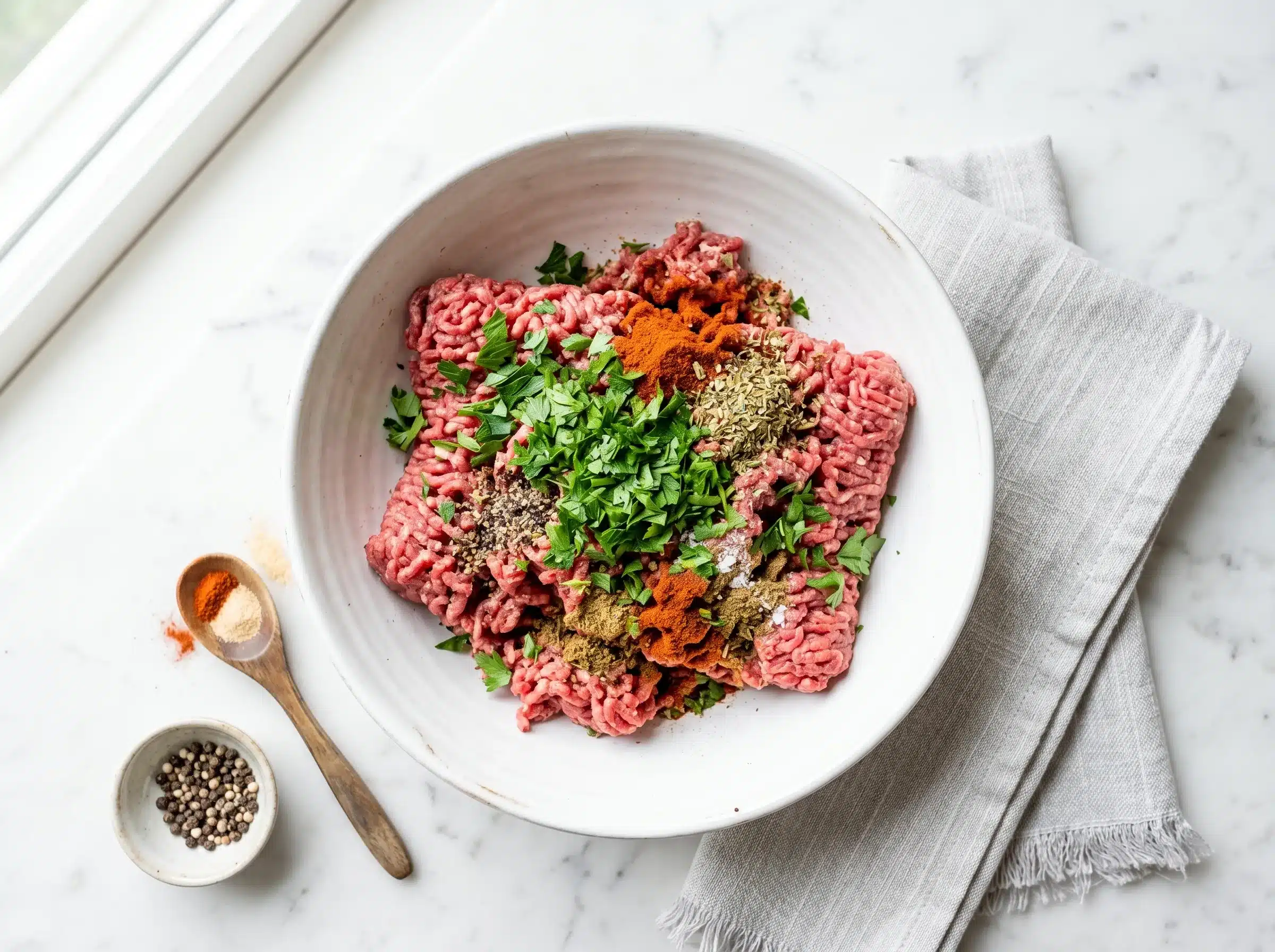 The Spice Blend: Do not simplify the spice list. Each spice plays a specific role — cumin adds earthiness, coriander adds brightness, cinnamon and allspice add warmth and complexity. Together they create the unmistakable kofta aroma.