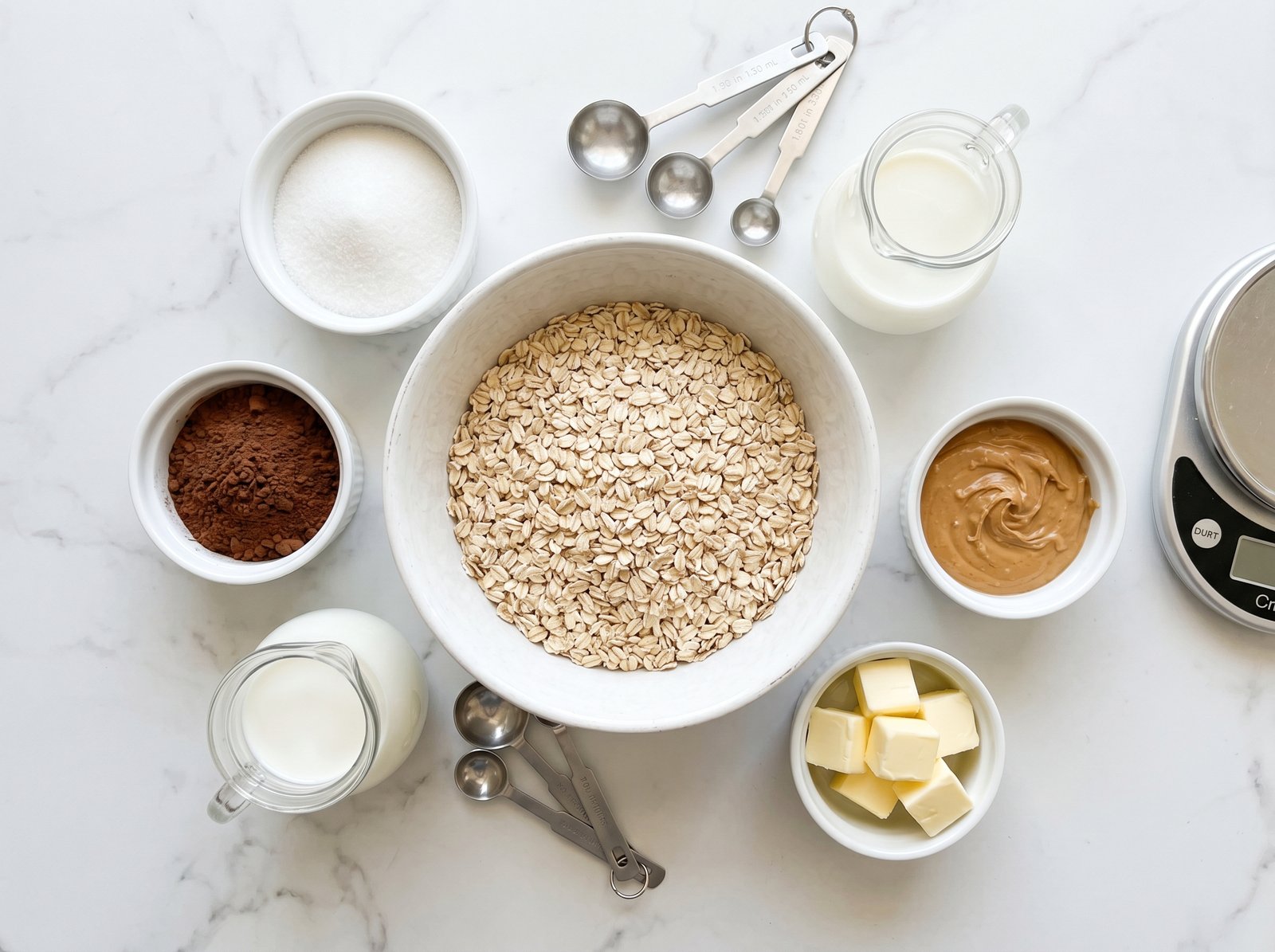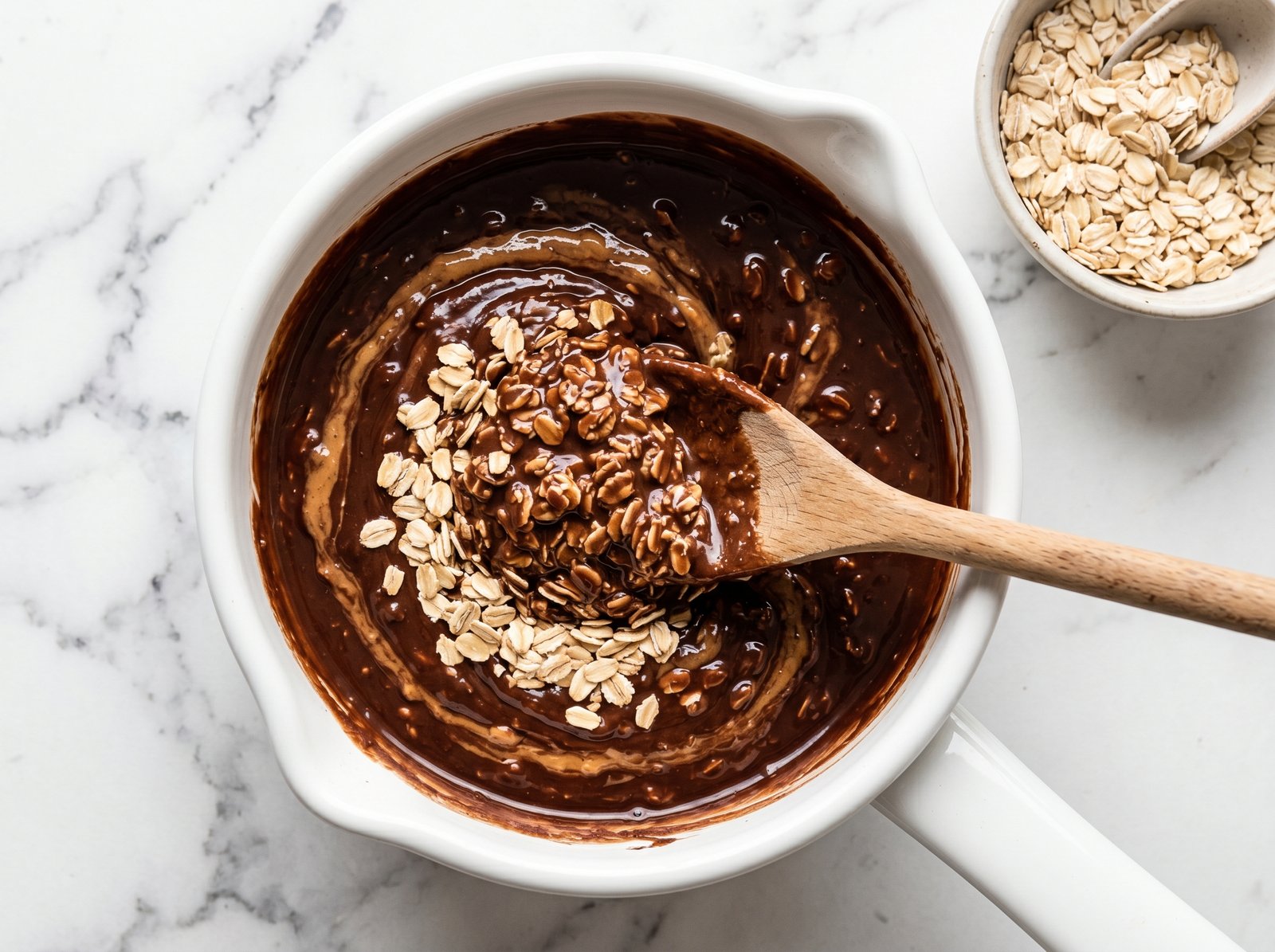 Quick Oats: Essential — not instant oats and not old-fashioned rolled oats. Quick oats have a finer cut that absorbs the chocolate mixture evenly and creates the right chewy texture. Old-fashioned oats make the cookies too chunky. Instant oats make them mushy.